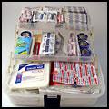 41-Piece Auto First Aid Kit, Plastic Case $5.95 41 piece kit It contains medications, antiseptics, bandages, and wound care items The size makes it ideal for the glove compartment or console storage Kit Includes: (2) Extra-strength non-aspirin tablets (2) Aspirin tablets (2) Motion sickness tablets (1) Insect sting relief pad (2) Antibiotic ointment packs (6) Alcohol cleansing pads (3) Antiseptic cleansing wipes (sting free) (10) 3/4 X 3 Adhesive plastic bandage (1) 2 X 4 Elbow and knee plastic bandage (1) Fingertip fabric bandage (1) Knuckle fabric bandage (1) 2 X 3 Non-stick pad with adhesive tabs (4) 2 X 2 Gauze dressing pads (1) 1/2 X 5 yd. First aid tape roll (2) Exam quality vinyl gloves (1) First aid guide |